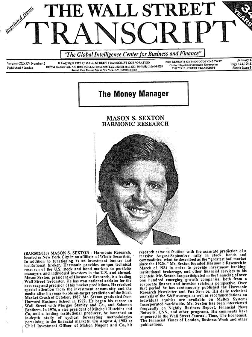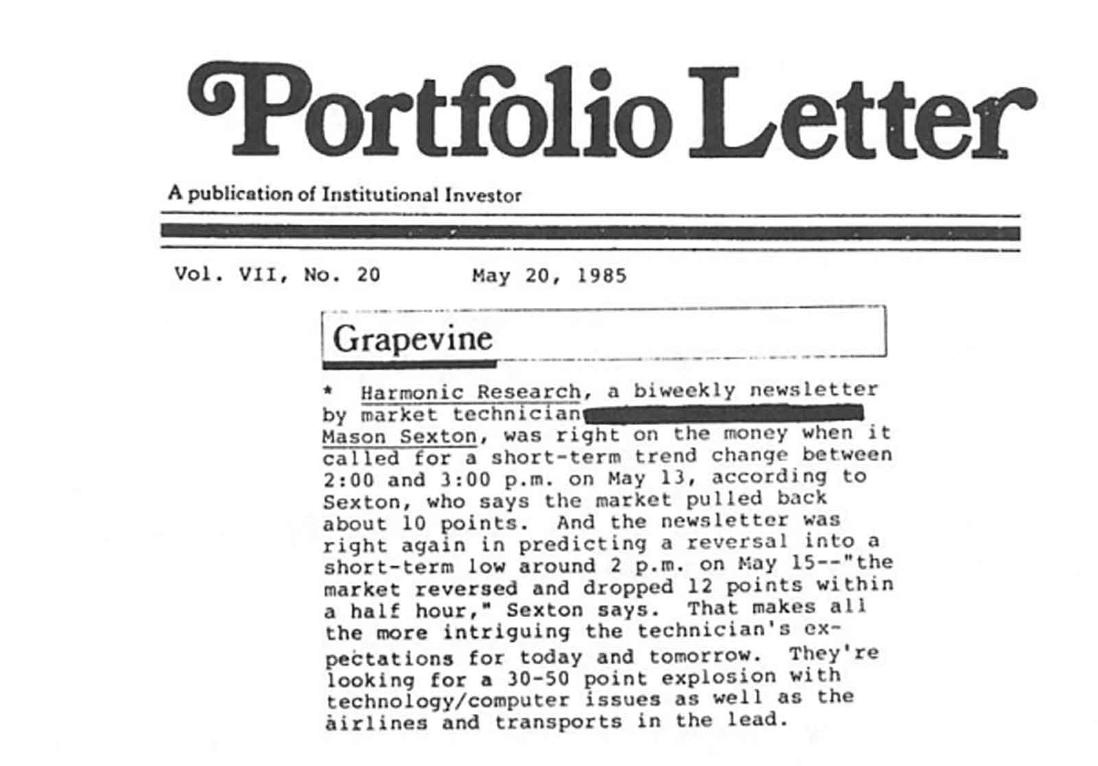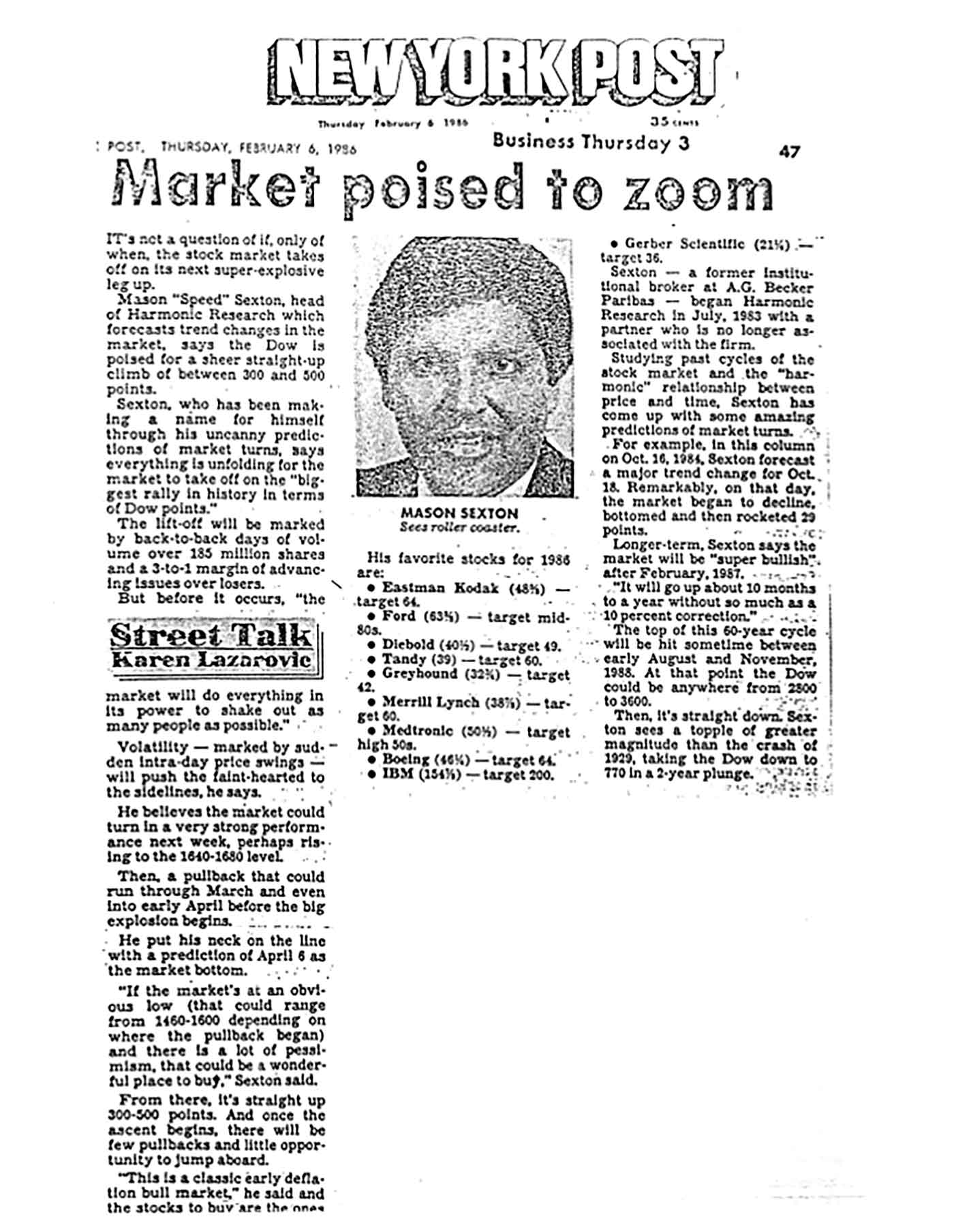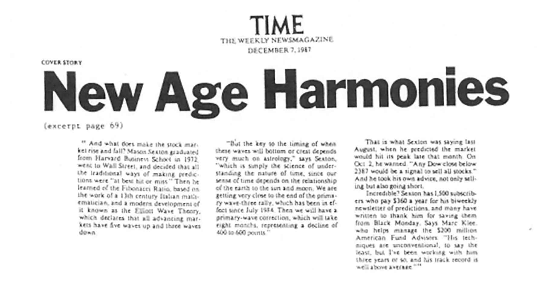 In 1984, he formed Harmonic Research—a market timing service that covered stocks and bonds.